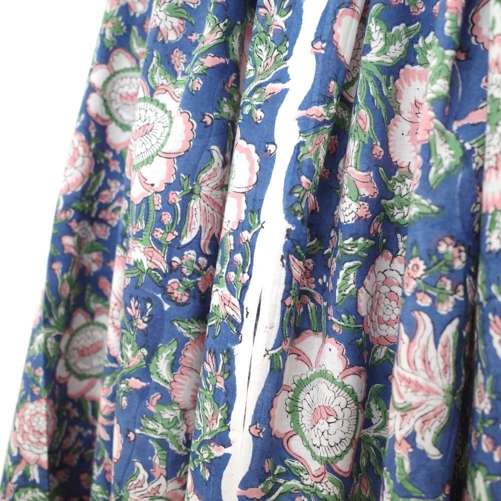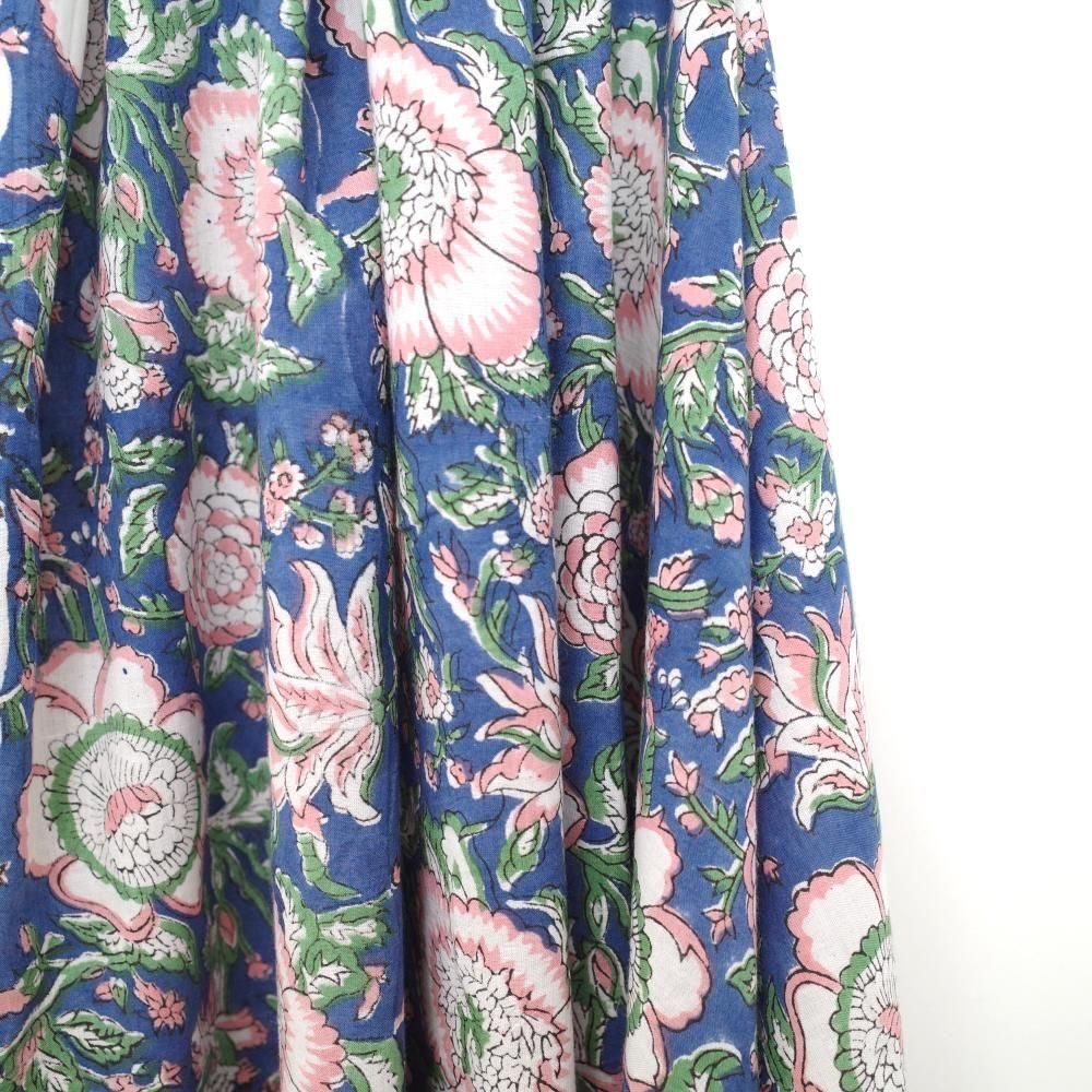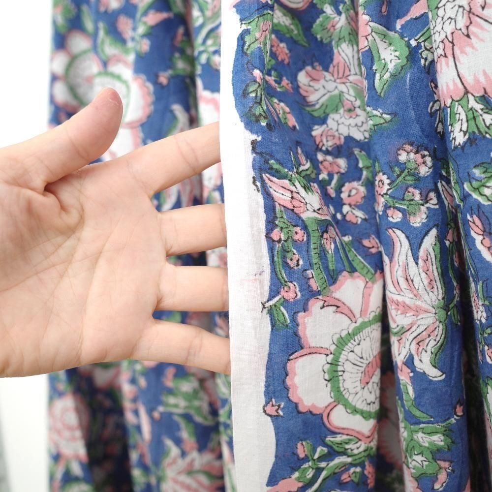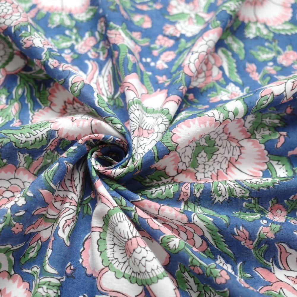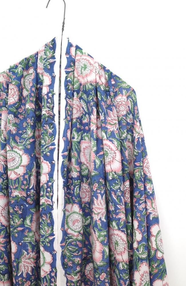 特徴 華やかな構図の花柄。深みのあるブルー×ベビーピンク。