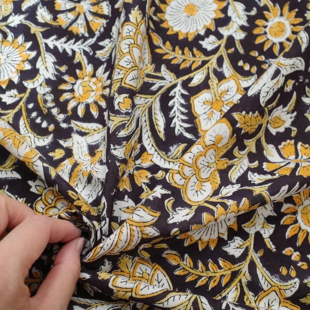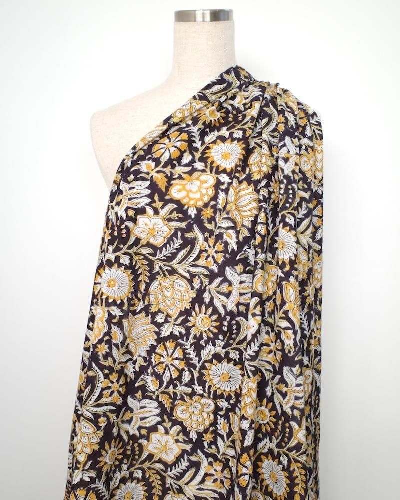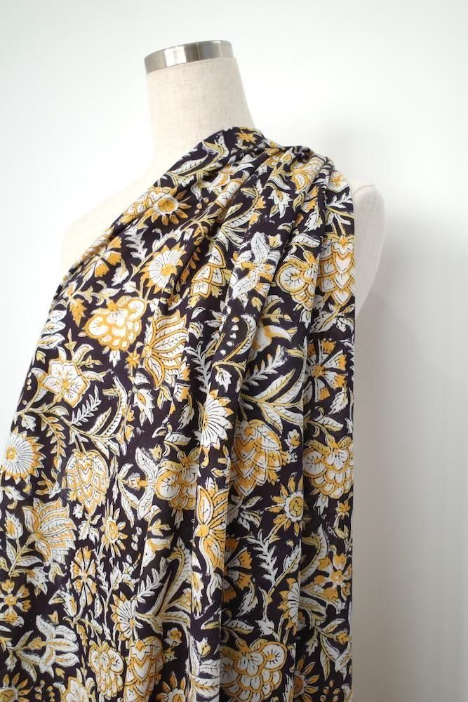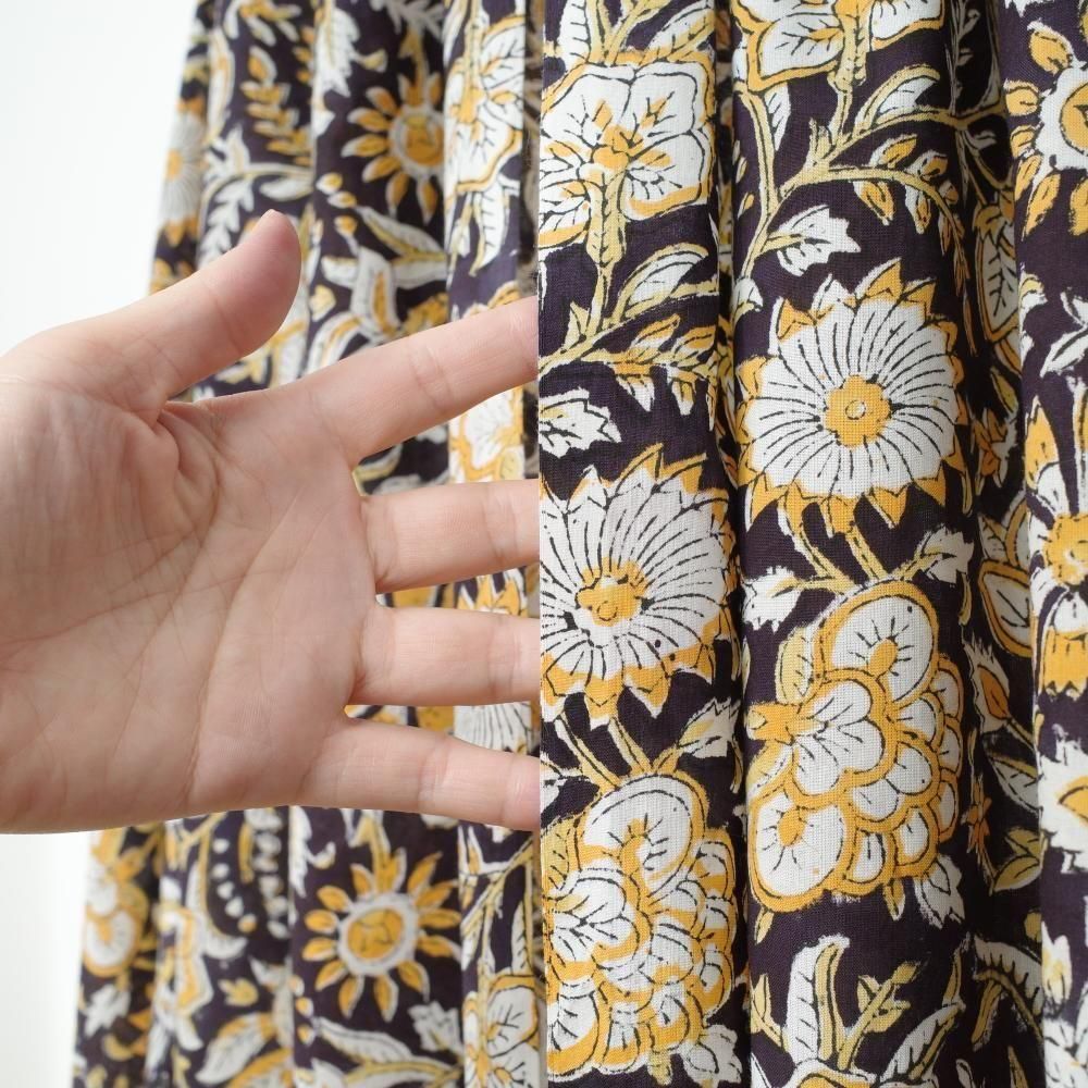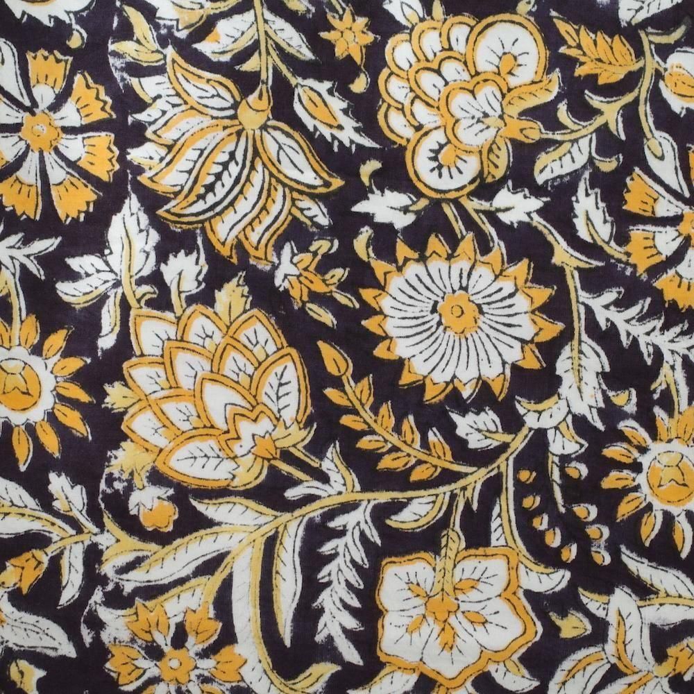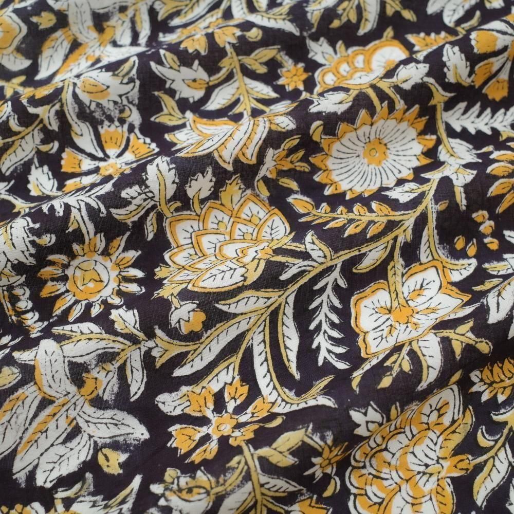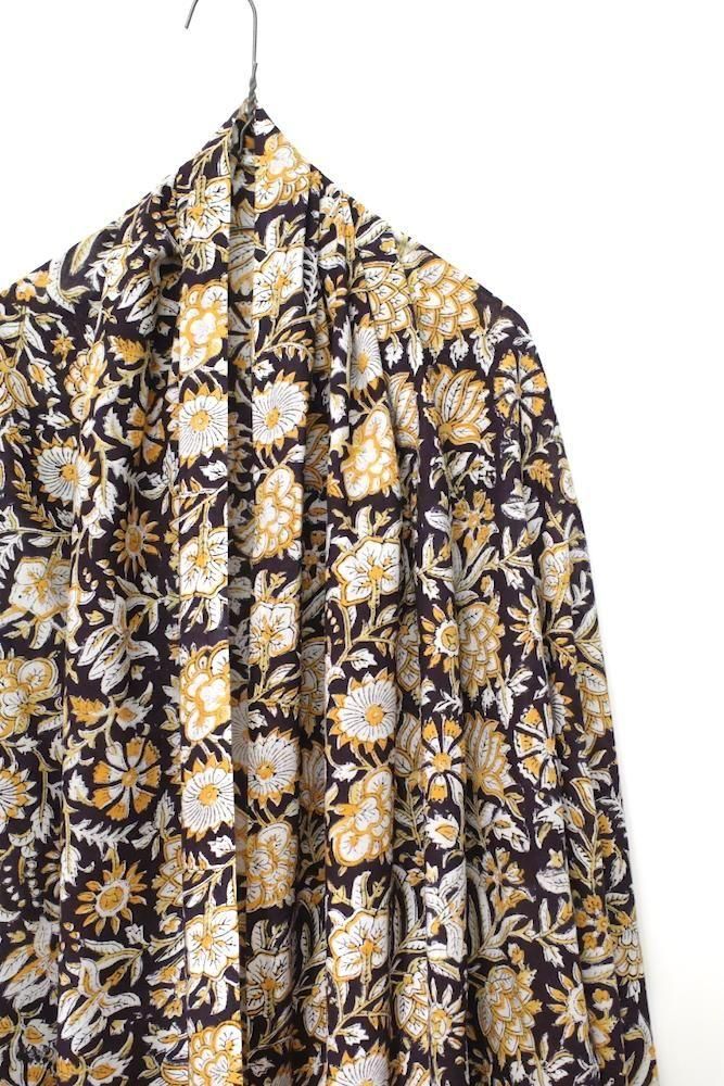 特徴 伝統的な構図の花柄。ブラックの地色にキリッとイエローの花。