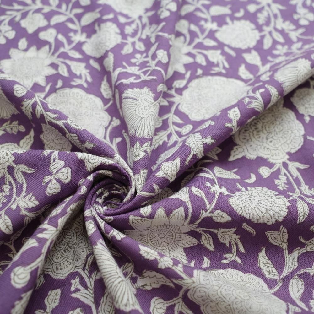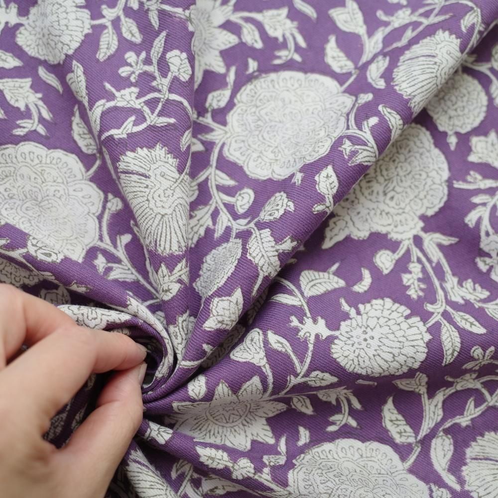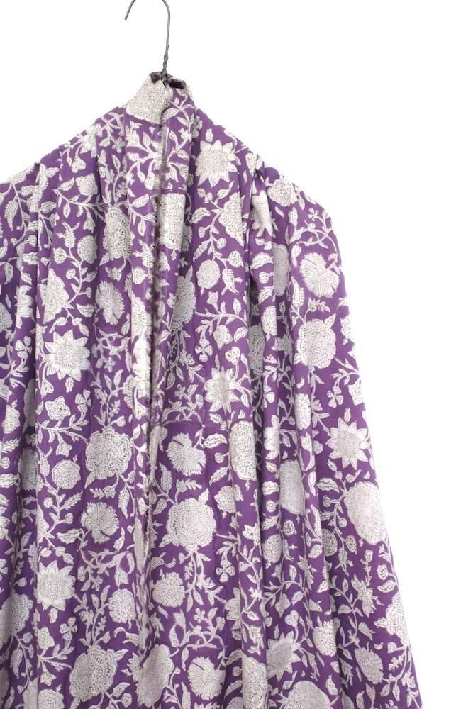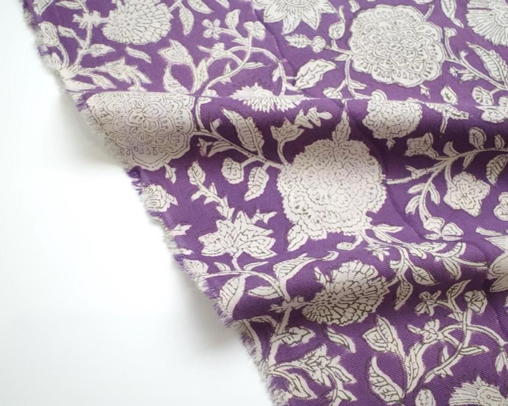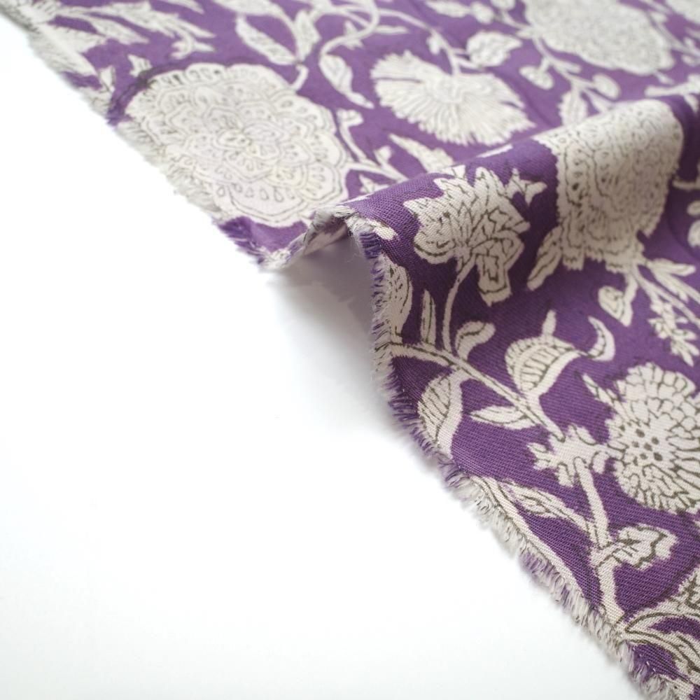 精密で美しいクラシカルな花柄。落ち着いたパープルのベースに&墨黒のライン。抜けている部分は白ではなく、ライトグレーに染まっています。