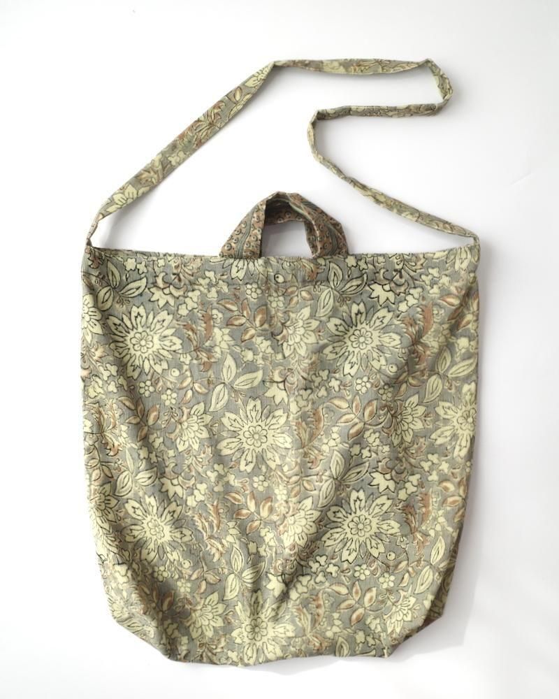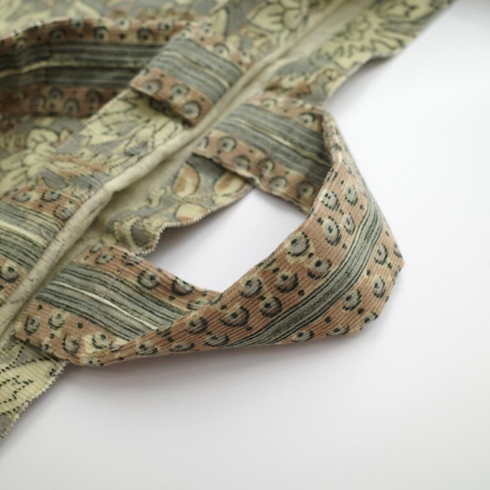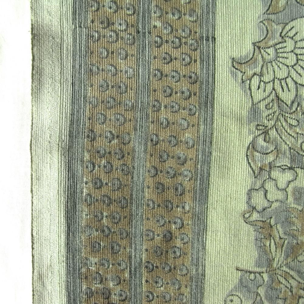 入り組んだ構図が見事な柄。地色(プリントされていない部分)は薄い黄緑に染まっています。片耳にボーダーが入っています。
